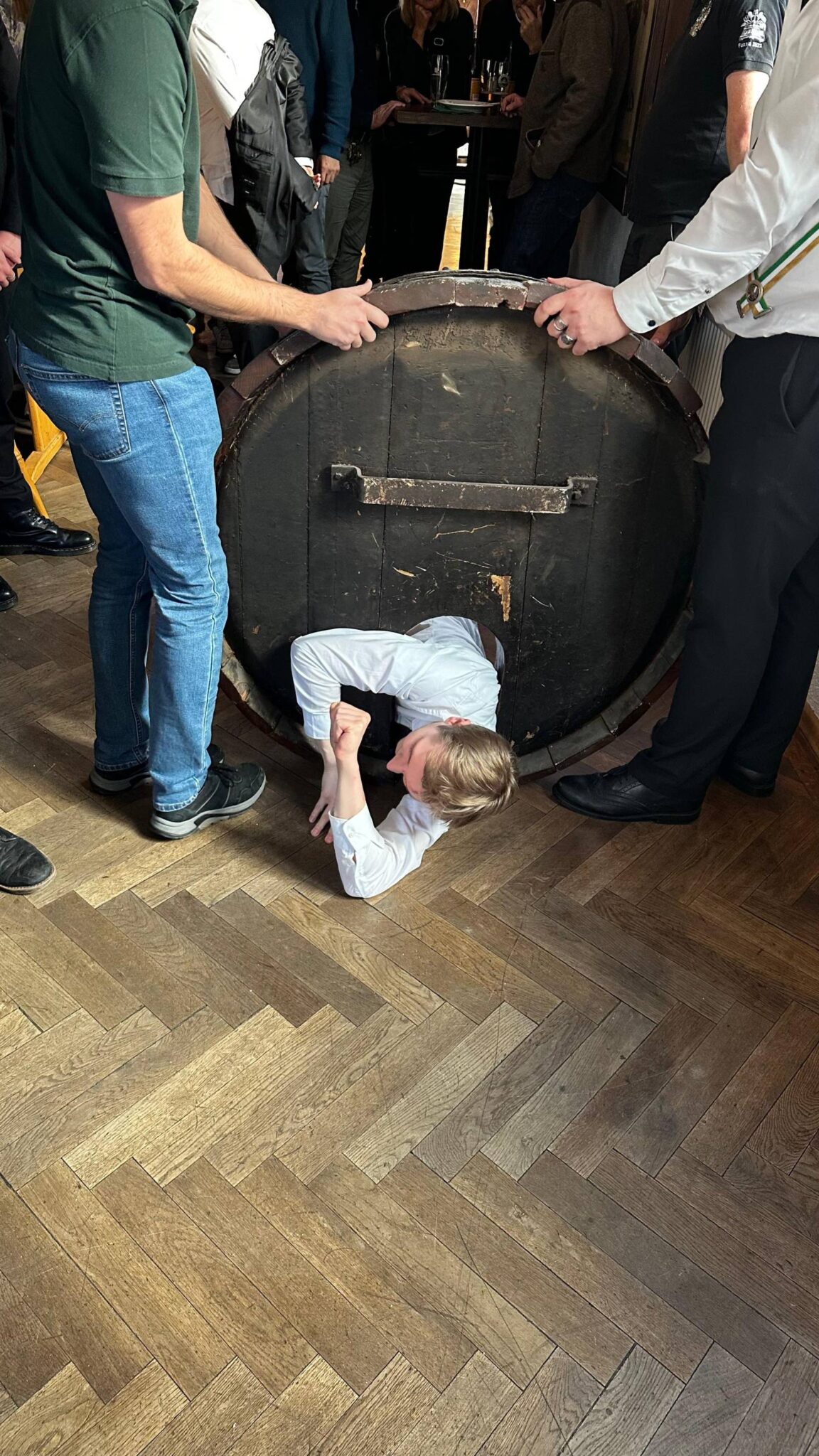 Nach der Anlieferung 3 neuer Gärtanks durch AH Matthias Stetter am 3. März 2020 konnten diese mit vereinten Kräften einiger hilfsbereiter Bundesbrüder in den Keller getragen und dort insalliert werden.